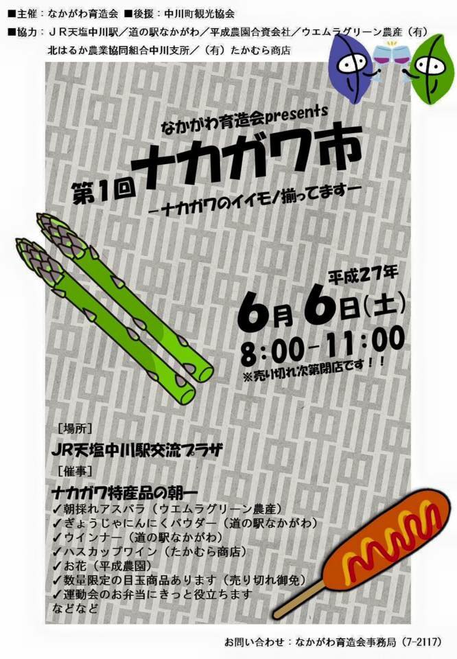 6/6に町内の異業種交流グループ「なかがわ育造会」主催のナカガワ市が開催されます。