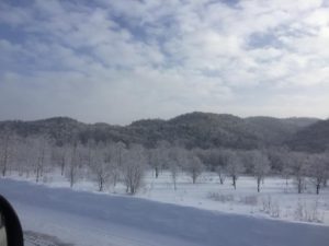 でも、寒さも厳しくなるこの時期は、空気が寒さによって凍らされ、それが木々の枝を美しく装飾するような「樹氷」が見られます。