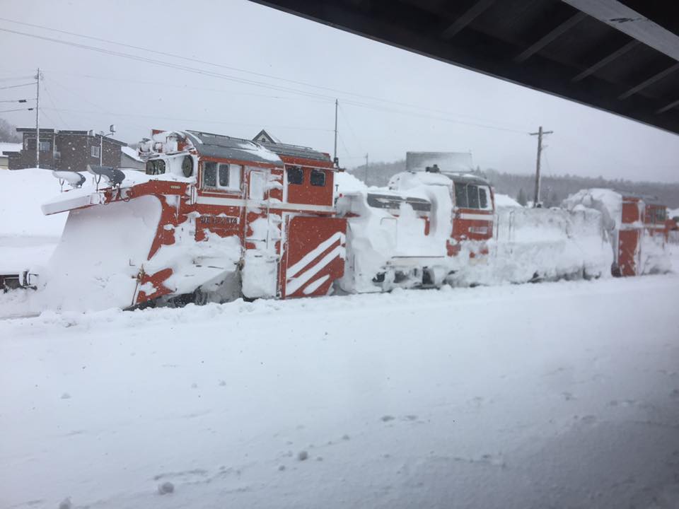この季節は、線路の除雪作業用のラッセル車がJR天塩中川駅で、休憩する姿が間近で見られます。