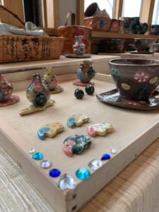 作品に囲まれながらの、コーヒータイムもオススメです。テイクアウトを待つ間に、眺めていただいても楽しめます。