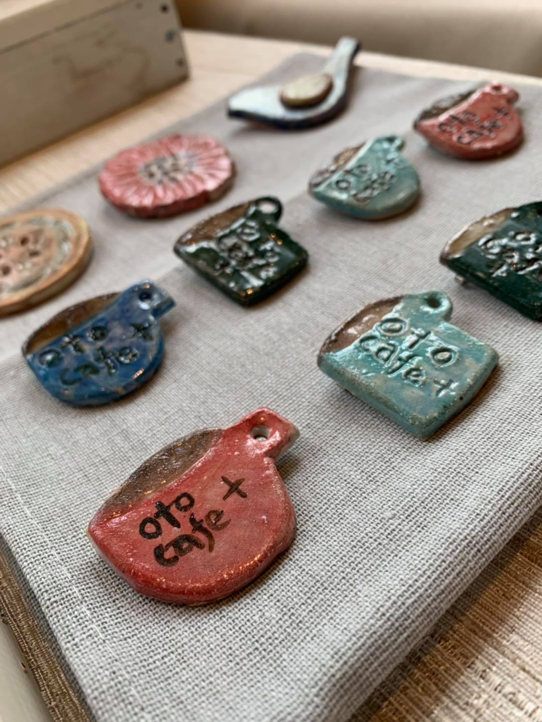 作品に囲まれながらの、コーヒータイムもオススメです。テイクアウトを待つ間に、眺めていただいても楽しめます。