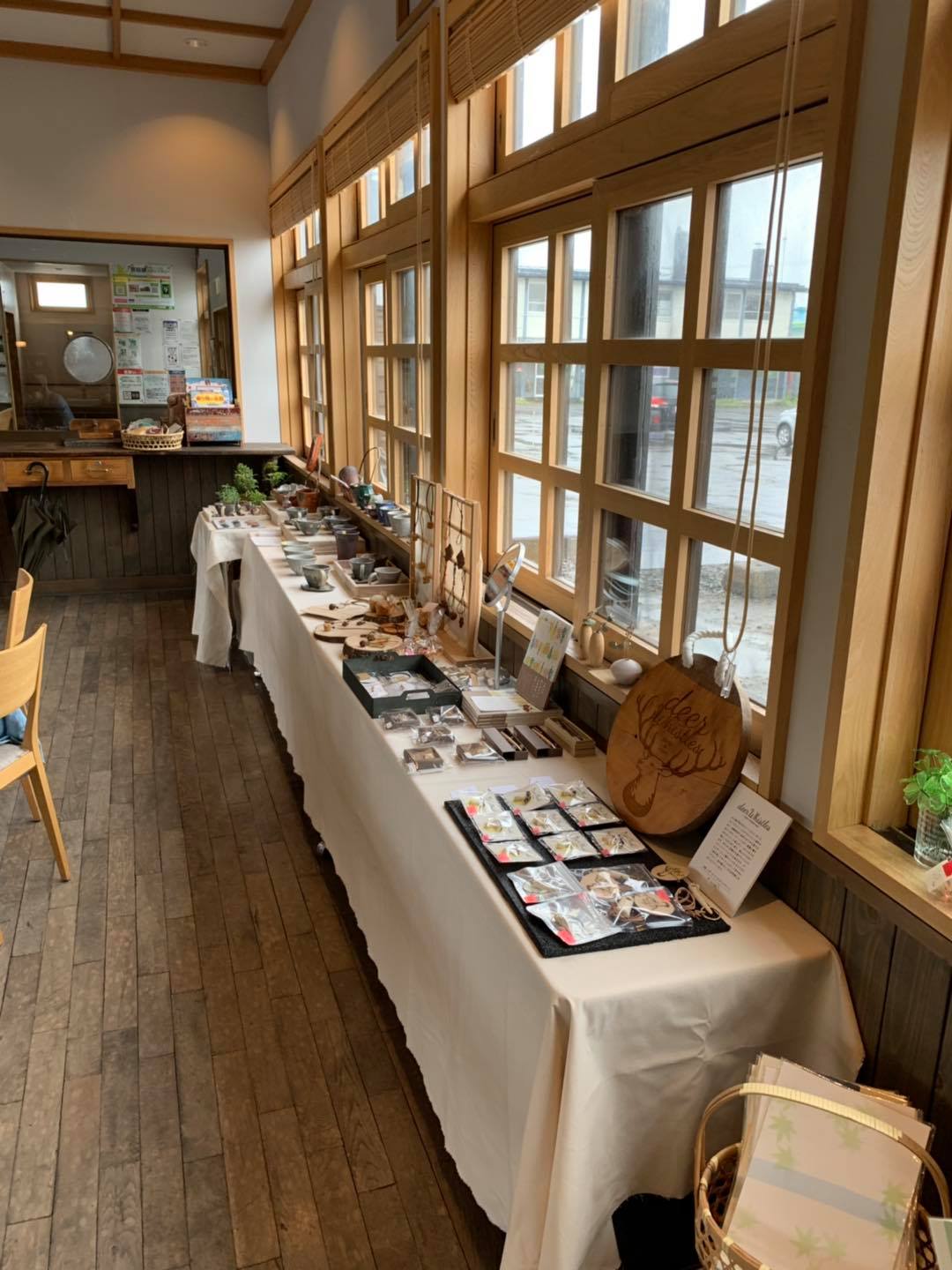 今月も、先月に引き続き、町内 手工業組合「森と手と」と皆さんとのコラボカフェです。中川で生まれた材料と手仕事から生まれた作品の数々を展示販売します。