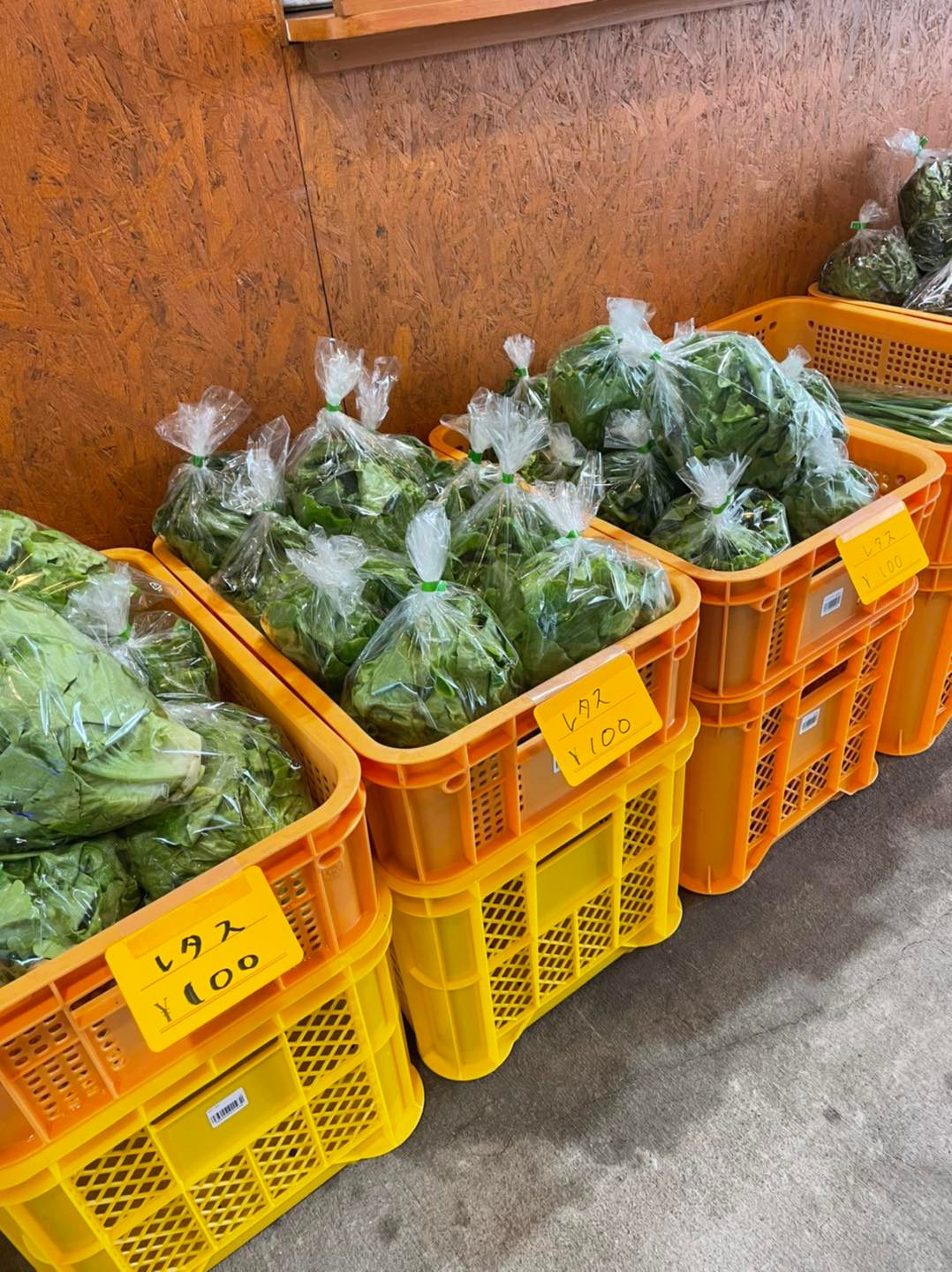 まずはレタスやにらなどが並びました!