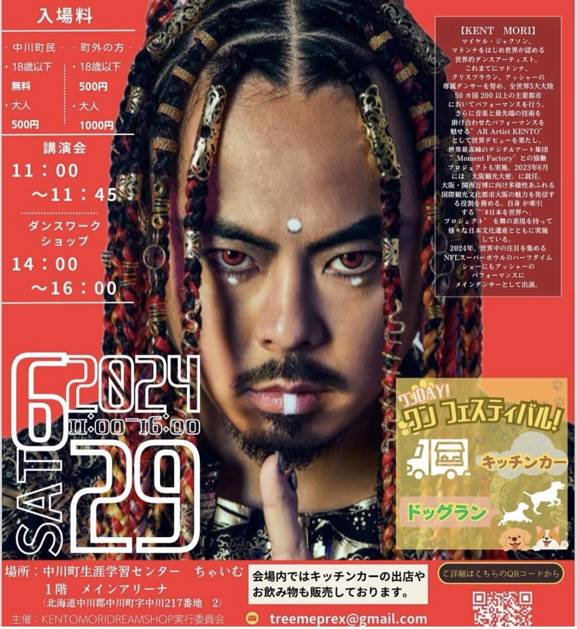 6/29は世界的ダンサーKENTO MORI氏が中川町に降臨。KENTO MORI DREAM SHOPが開催されます。