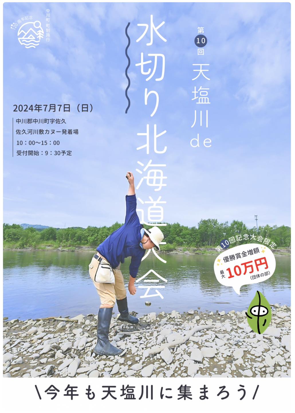 朔北の大河「天塩川(てしおがわ)」を舞台に、みんなで水切りを競う大会で、今年は10回の記念大会となります。