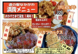 振り返ること1年前、道の駅に登場した満腹メニュー三品。