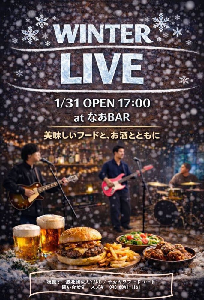 今週末の31日は、町内なおバーにてフードコートとライブが行われます。