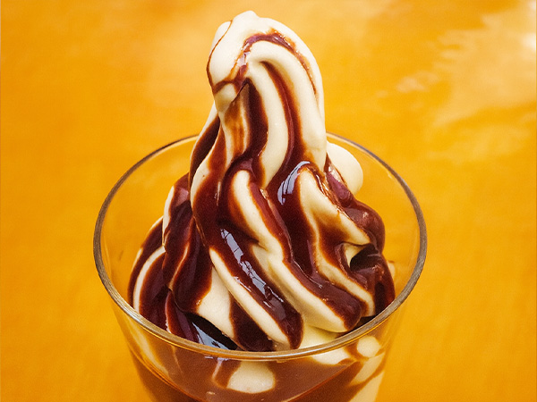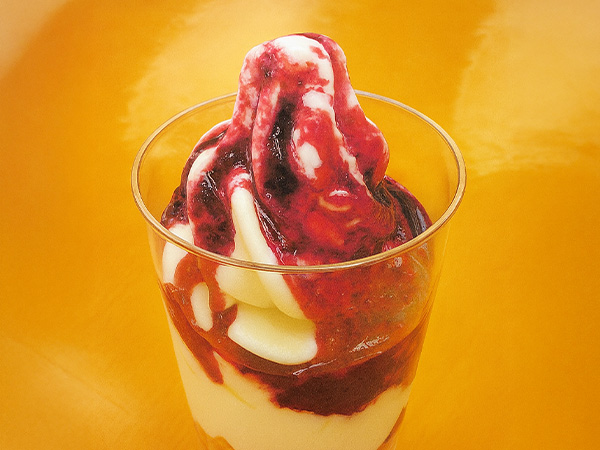 ハスカップソースを添えた「ハスカップソフト」。